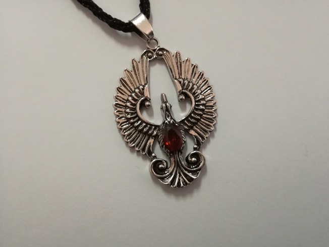 Pasărea Phoenix, este un simbol al renașterii din propria cenușă. În unele mitologii, pasărea Phoenix arde, după care renaște din propria cenușă, reluând ciclul vieții. Medalionul inspiră spiritualitate, induce o ”renaștere” și curaj după nereușite, eșecuri etc. Șnur negru inclus .