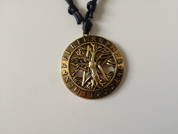 Medalionul este o combinație perfectă între Arborele Yggdrasil, care în mitologia nordică unește cele 9 lumi, este inceputul, renașterea și sfarșitul, in fundal simbolul spiritual și protector al pentagramei. Iar de jur împrejur medalionul este inscripționat cu simbolurile runelor, care aduc protecție, spiritualitate, propseritate, etc.