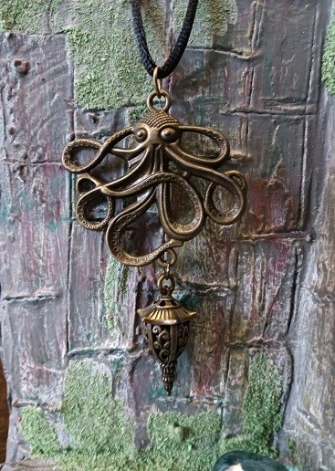 Un pandant Octopus cu un felinar în filigram, din bronz, de inspirație victoriană - vintage. Snul negru cca 5cm, un cadou perfect