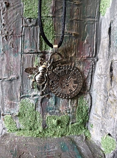 Pandant de inspirație victoriană, vintage, șnur negru reglabil, pandant cca 3.5 cm
