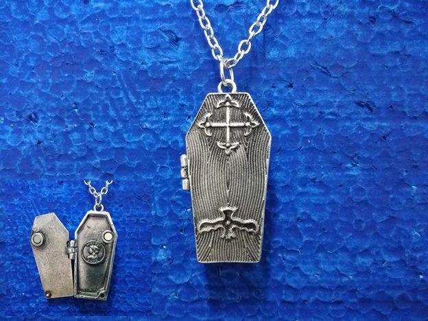 Medalion Coffin Vampire tip casetă cu tentă vintage, model simplu, lanțișor inclus .