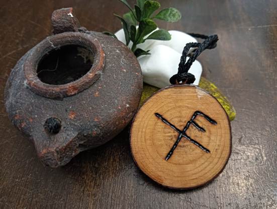 Amuletă Gibo Auja, bindrune, rune combinate, pentru noroc ! Realizată manual prin pirogravură pe rondele de lemn lăcuit. Poate fi purtată personal, are un șnur negru reglabil, sau postată al intrarea în casă, birou, etc. Expedierea prin poșta romană, sistem ramburs.